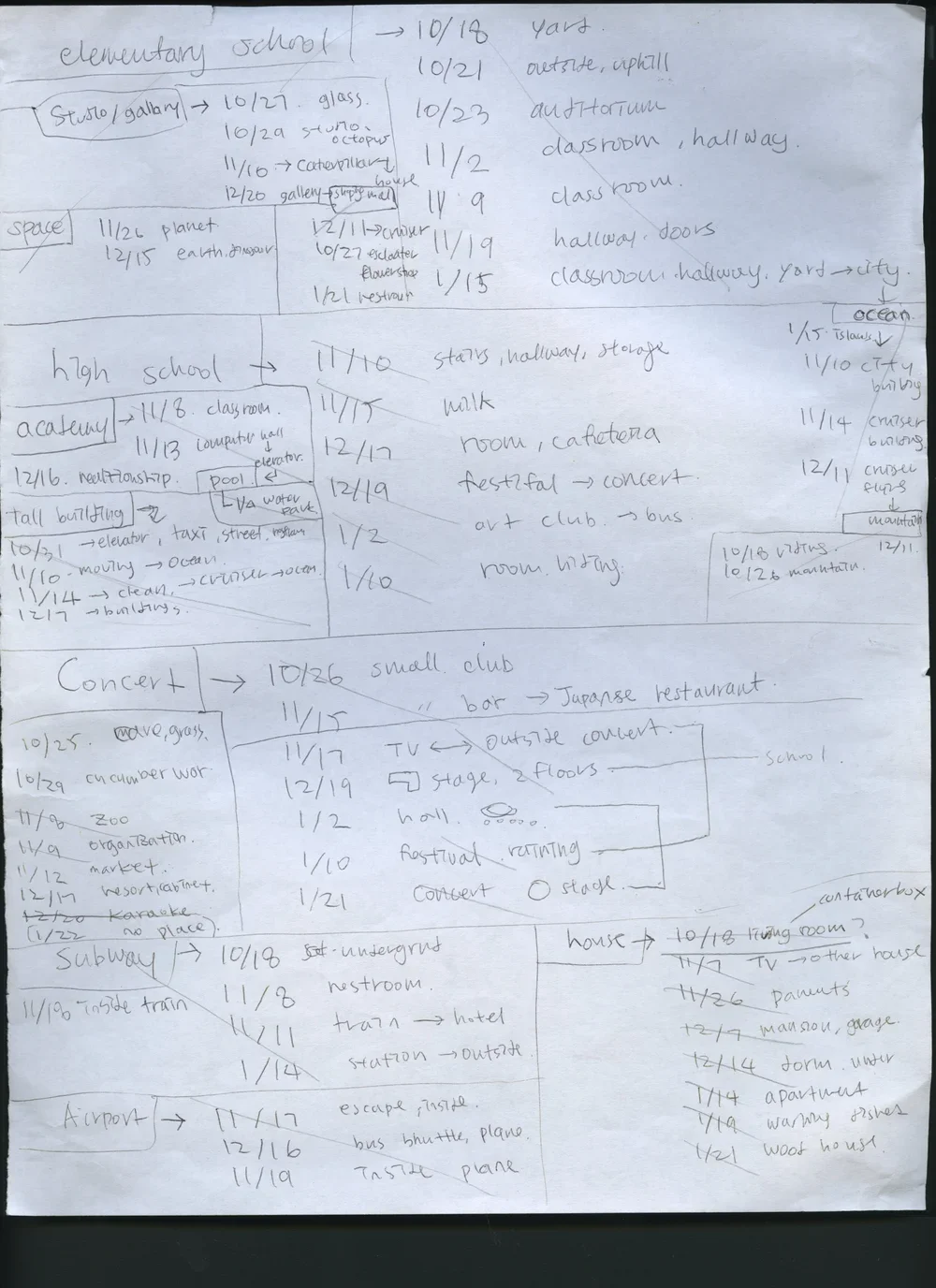 The process of making this world, is a great way to do self-reflection and also encourage people to consider my perspective. You can be lost in a surrealistic world and enjoying unordinary juxtapositions, and also follow the random figure to elaborate portions of story in a certain view it provides. Through a closer look at each detail, audiences can create their own responses based on individual interpretations of these unusual scenes. In my work, drawing and experimental animation form realistic and unrealistic components that visually display an unconscious places. By reorganizing memories and finding ways of expressing suppressed thoughts, I’m creating my own psychological home.